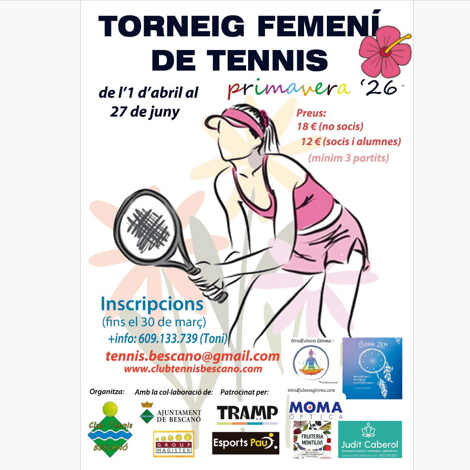 El Club de Tennis Bescanó organiza el 1er. Torneo femenino de primavera. Las fechas de inscripción ya estan abiertas hasta el próximo 30 de marzo.